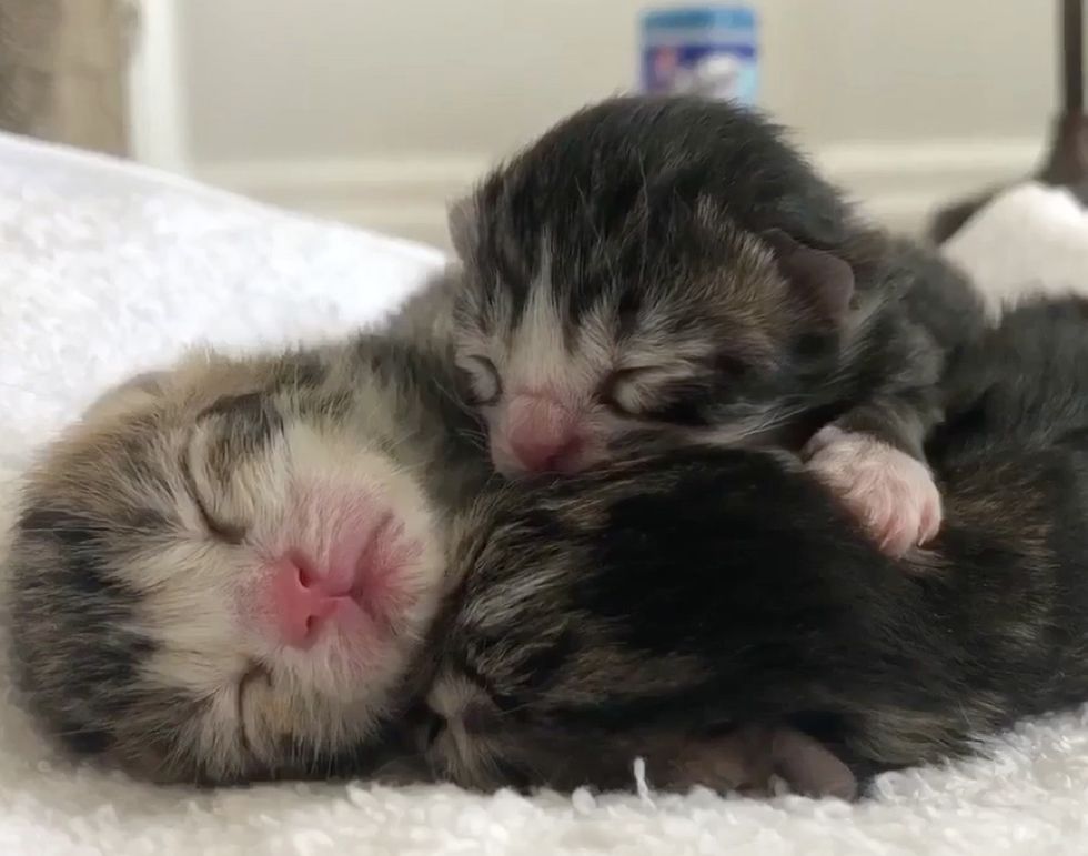 The kittens, all boys, were named Leelo, Elijah and Jasper. They gravitated towards each other and always huddled up in an adorable purr pile. They were so content when they had their arms around one another.