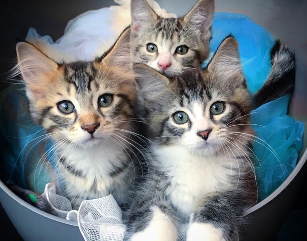 The sweet tabby mom cared for them until they were weaned and big enough to spread their wings and fly the nest on their own. The trio ventured out and waddled around as a tight-knit clowder. They tried to imitate each other when they played, and wrestled in a puddle of fluffy cuteness.