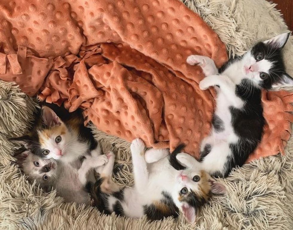 After getting all cleaned up and their bellies filled, the kittens snuggled up in a purr pile in their warm bed and went right to sleep. "They were so content and always purring," Lauren shared.