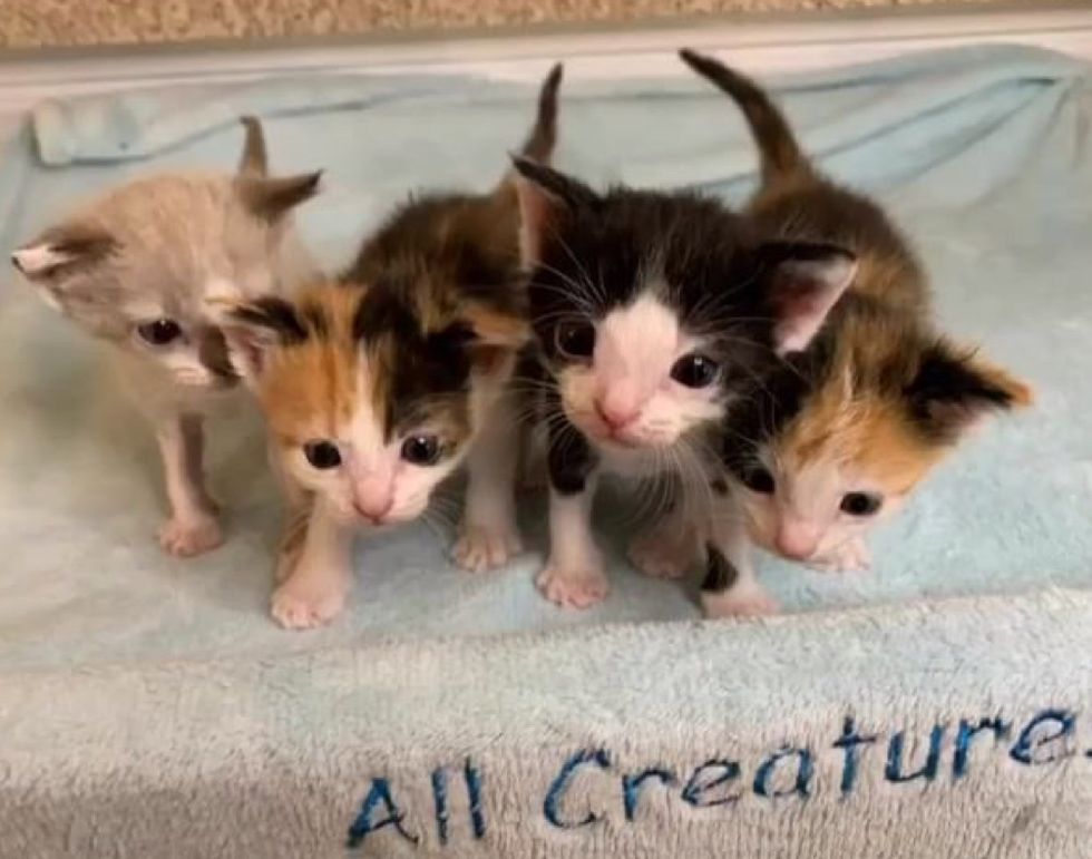 The four were named Kylie (calico), Kia (calico), Kip (Siamese) and Kolbe (black and white).