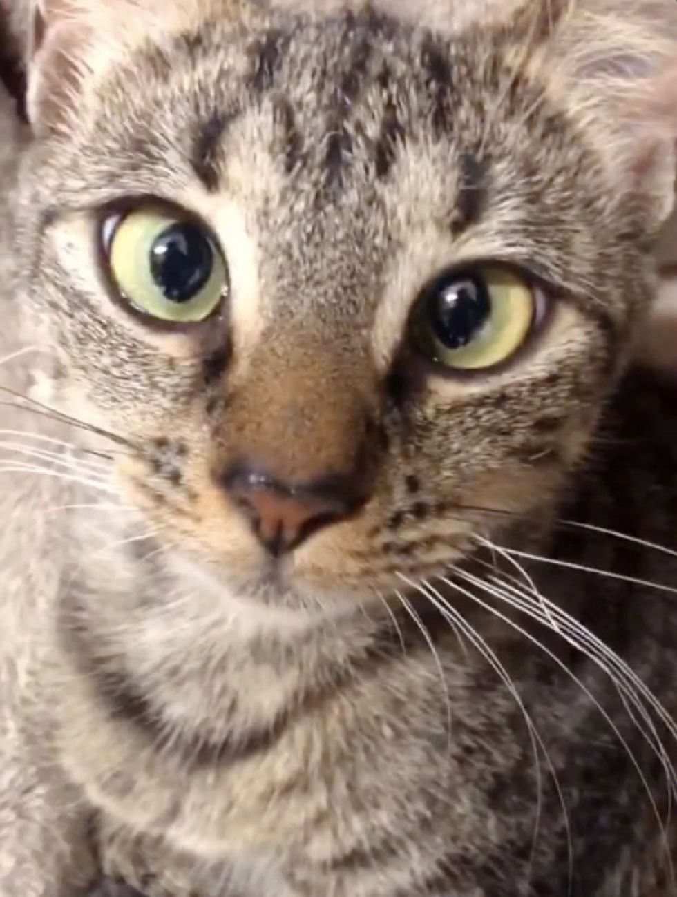 They immediately placed her in a foster home where they had prepared a nice and quiet place for the sweet cross-eyed tabby. They named her Sugarplum. She purred up a storm as a foster volunteer catered to her every need.