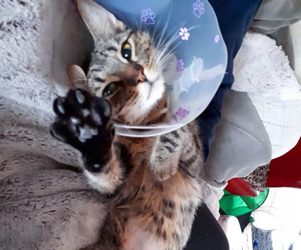 The sweet tabby girl began her recovery at a foster home. In three days, she gained one whole pound and tripled her energy.