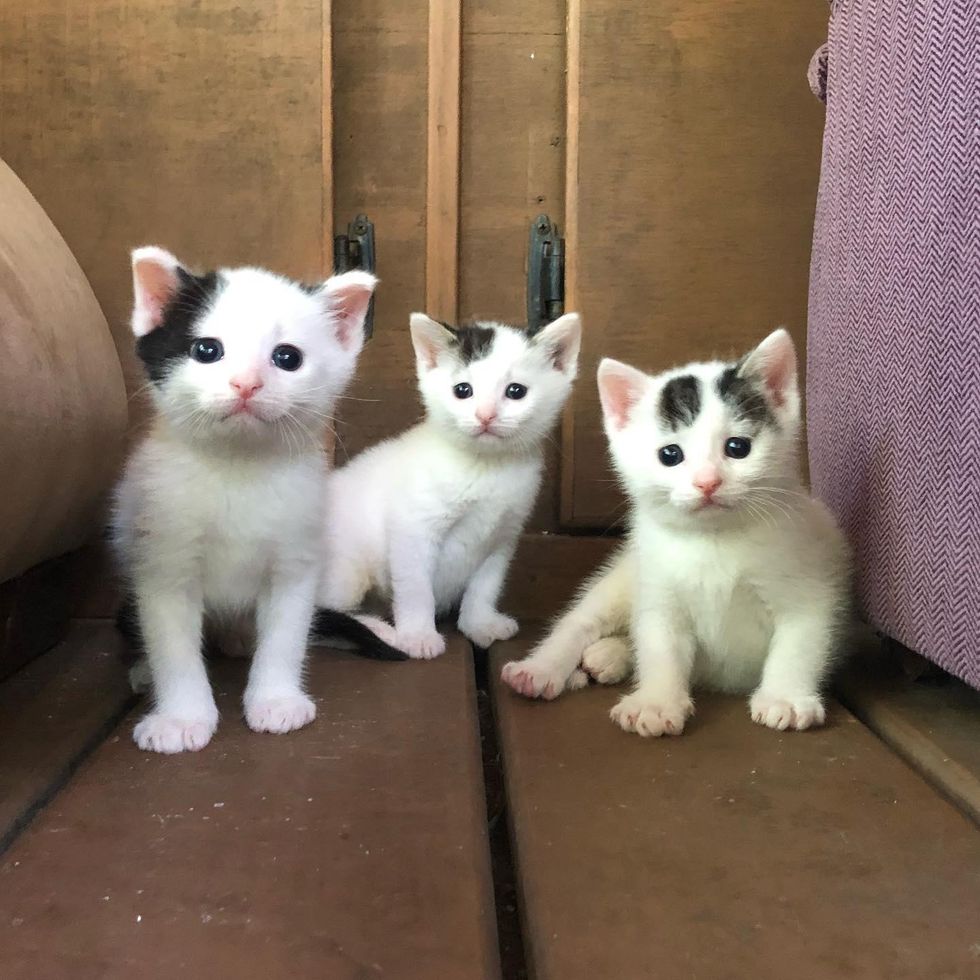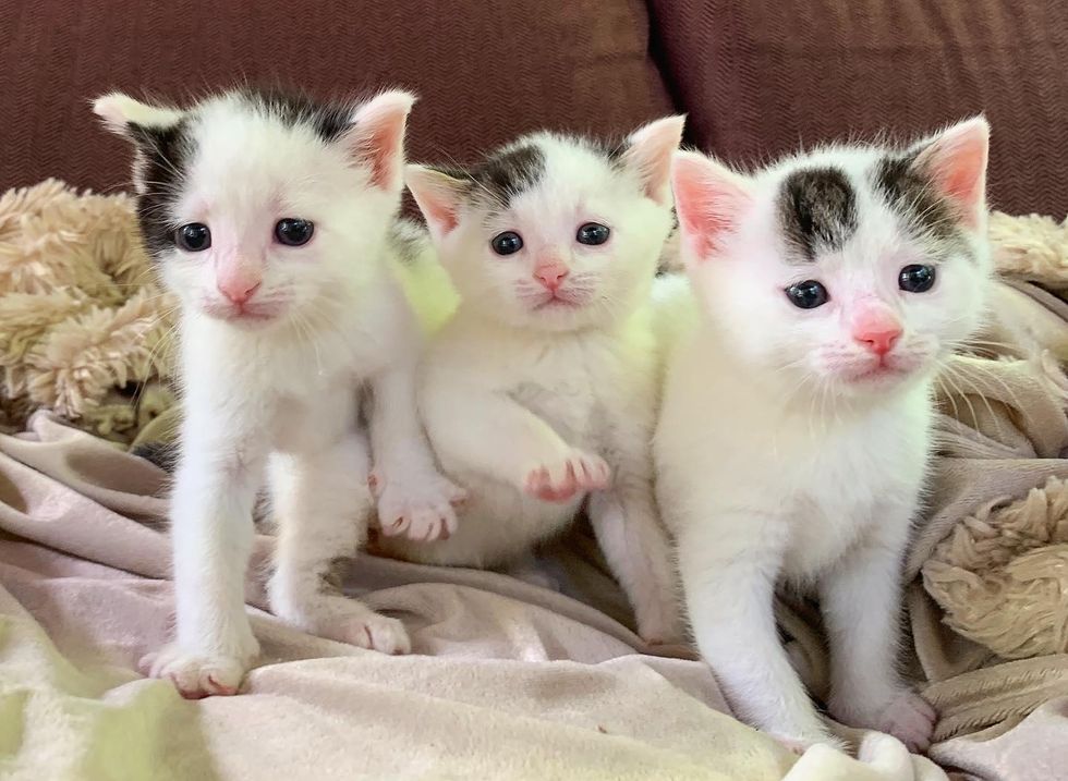 Three kittens with cow markings came to their foster home for a chance at a better life.