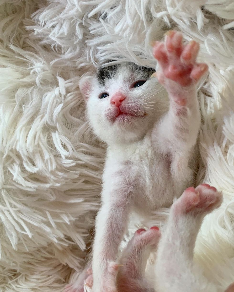 The happy little kittens waved their paws and stretched their toes in bliss.