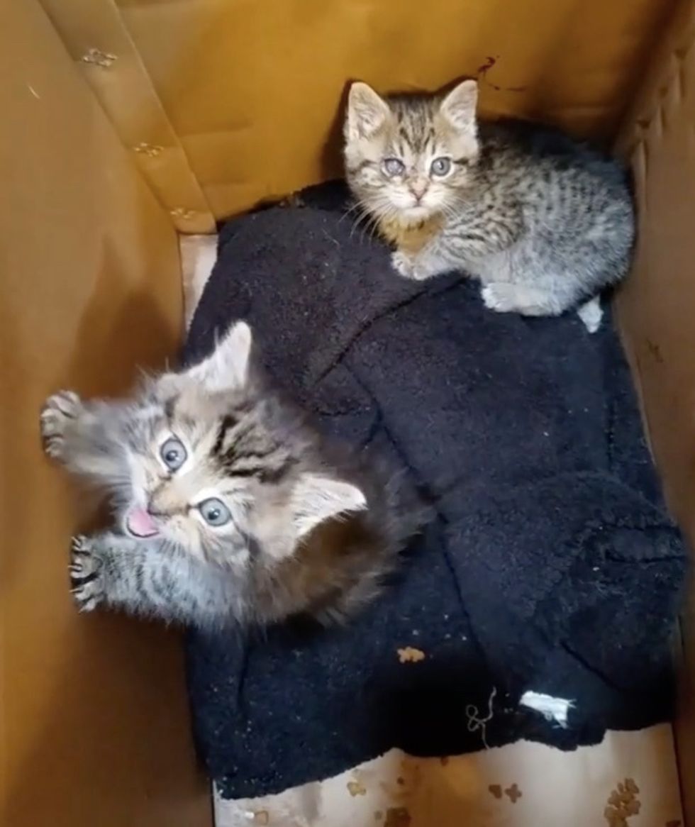 Two kittens were found in a gutter at an apartment complex when a person heard them crying.
