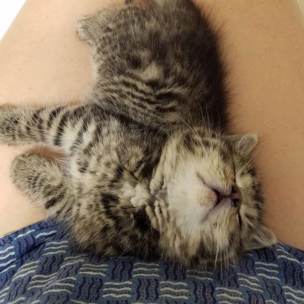 Captain Sparrow fell asleep on his foster mom after getting his belly filled.