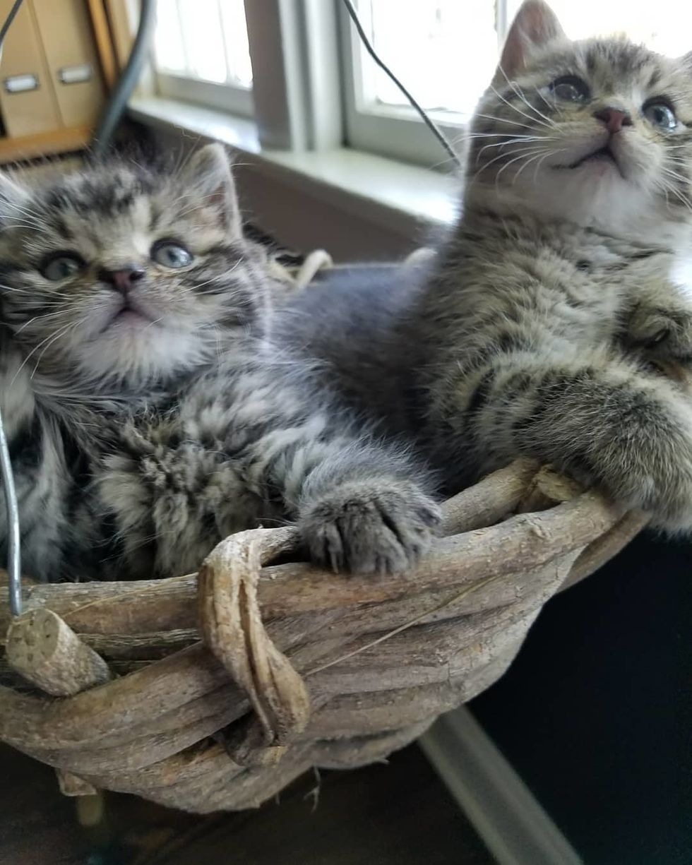 They are chunky little kittens who love to eat, play and nap with their humans.