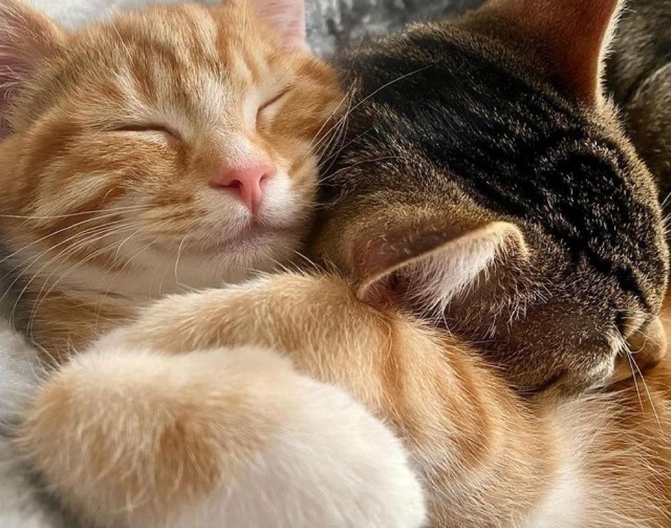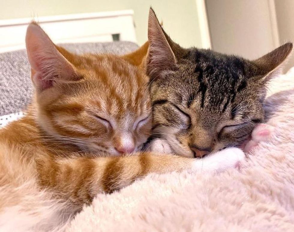 At the end of the day, they always cuddle up to each other and purr themselves to sleep.