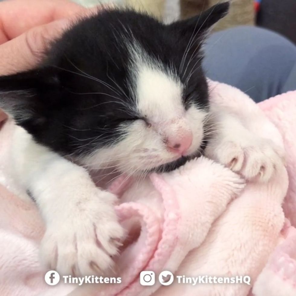 Two weeks ago, Tinykittens, a rescue group in Langley, British Columbia (Canada), took in three bottle kittens who were in need of love.