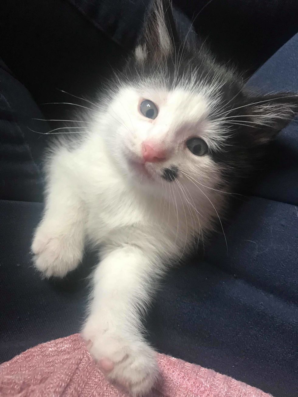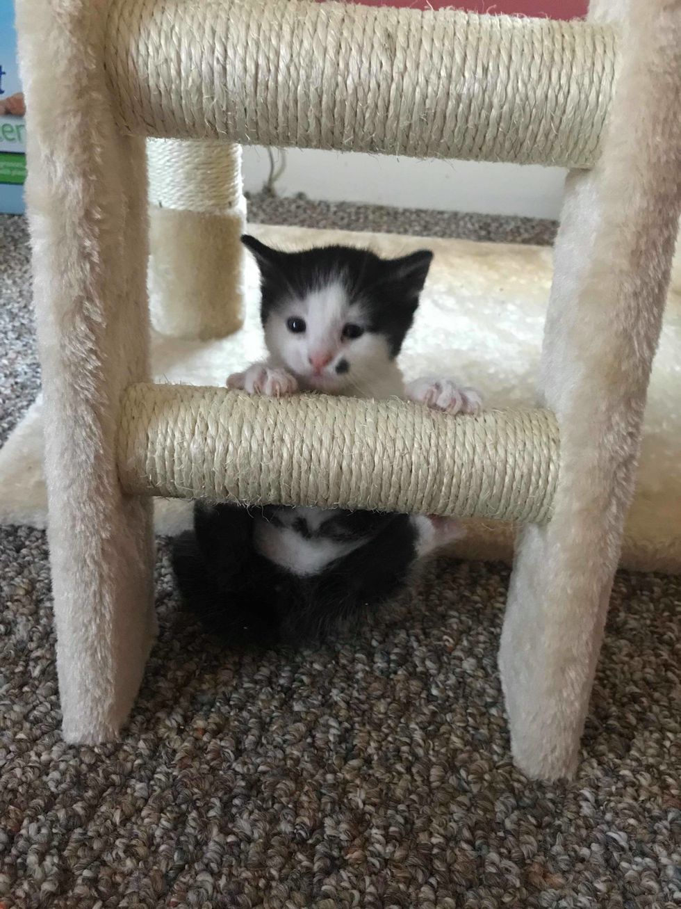 A rescued cat found a safe home to have kittens, and one of them was determined to stand out.