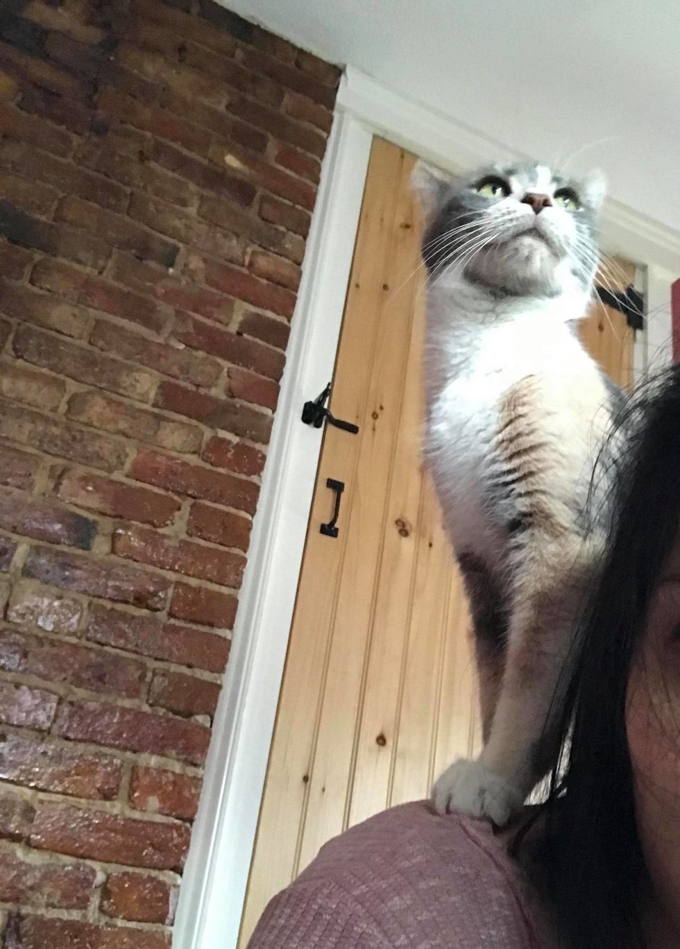"Their favorite method of getting attention is jumping up onto our legs and trying to climb up us," Katrina added.