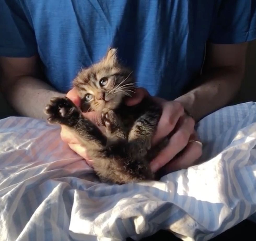 This sweet tabby stretched out those tiny toes in pure bliss while getting some ear scrtiches.