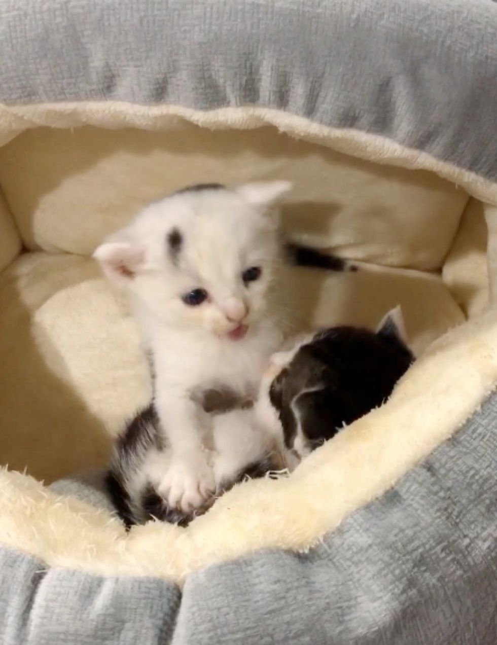 The kittens felt so much better after being cleaned. They fell asleep in their comfy new bed for a long nap.