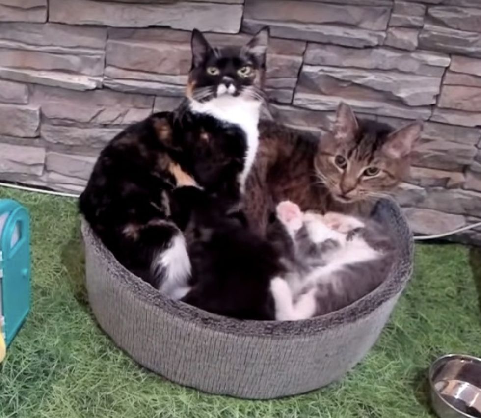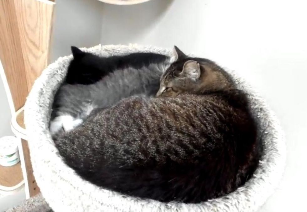The feline siblings stayed close together the whole time, keeping each other comforted.