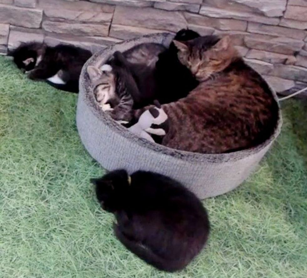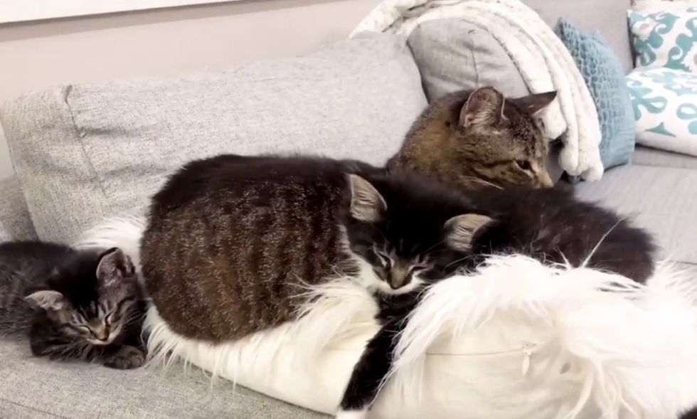 Five kittens who were abandoned next to a dumpster, found a grandpa cat to love on.