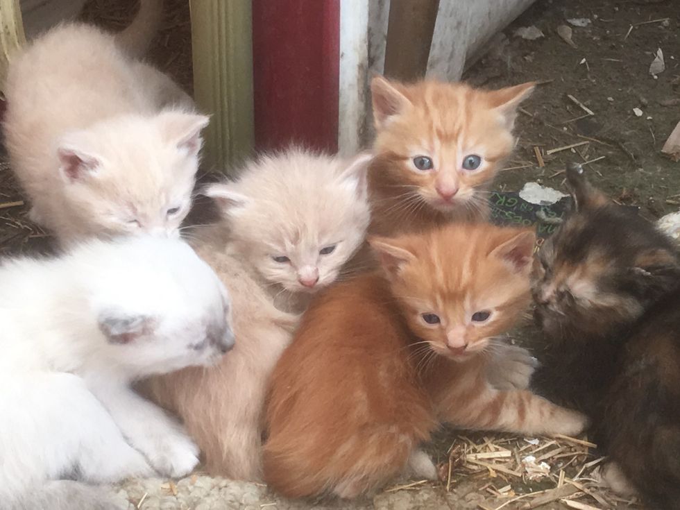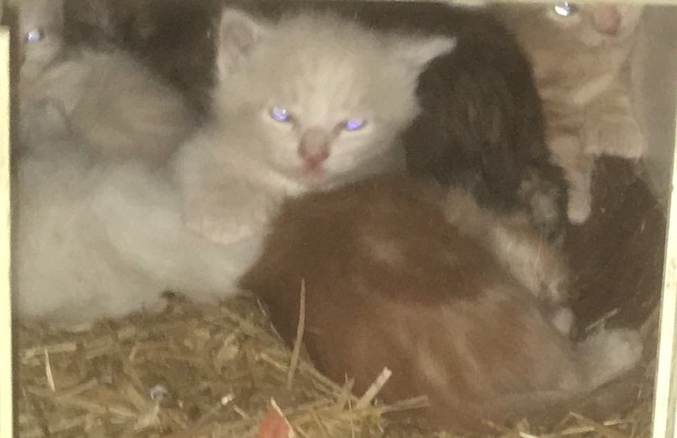 A young woman found a litter of kittens in an old dog house in their backyard. A neighborhood cat had chosen there to have her babies.