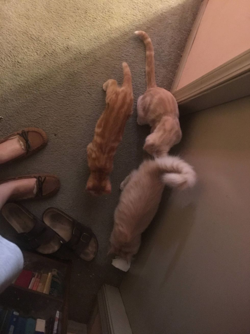 The remaining three gingers stayed with the family for quite a while. When they finally found them homes, one of the kitties refused to leave.