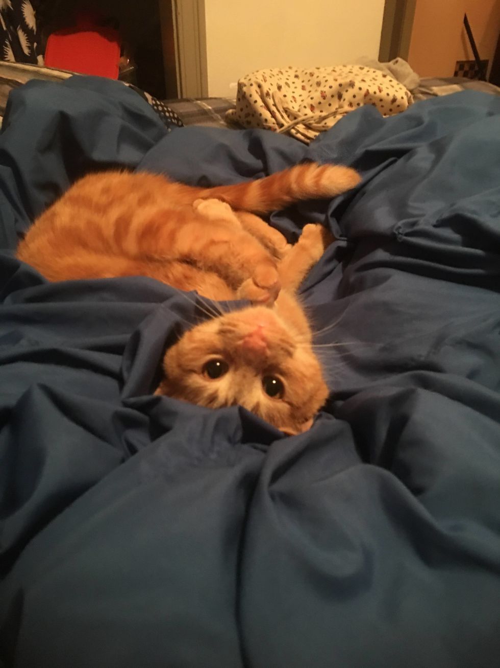 Later, the adoption fell through, and Orange never left his foster family. When Nichelle came home, the ginger boy was so happy to see her.