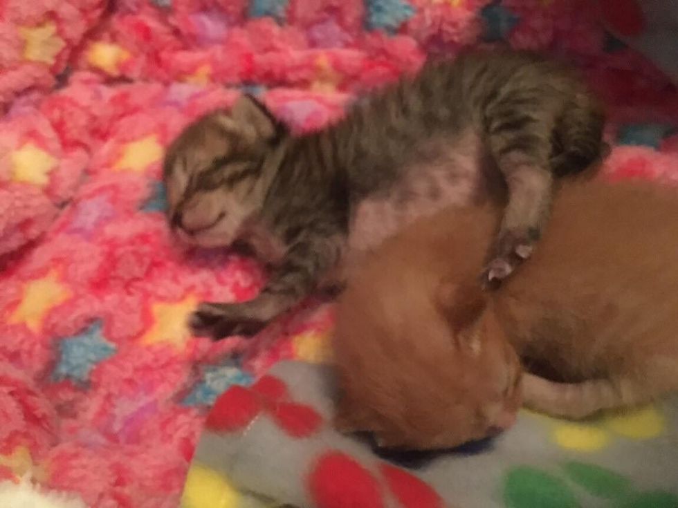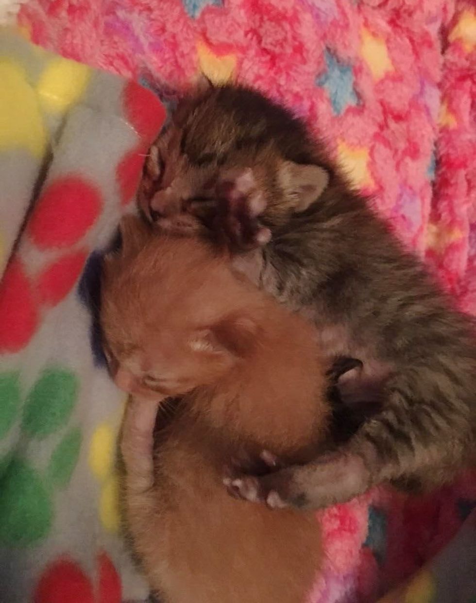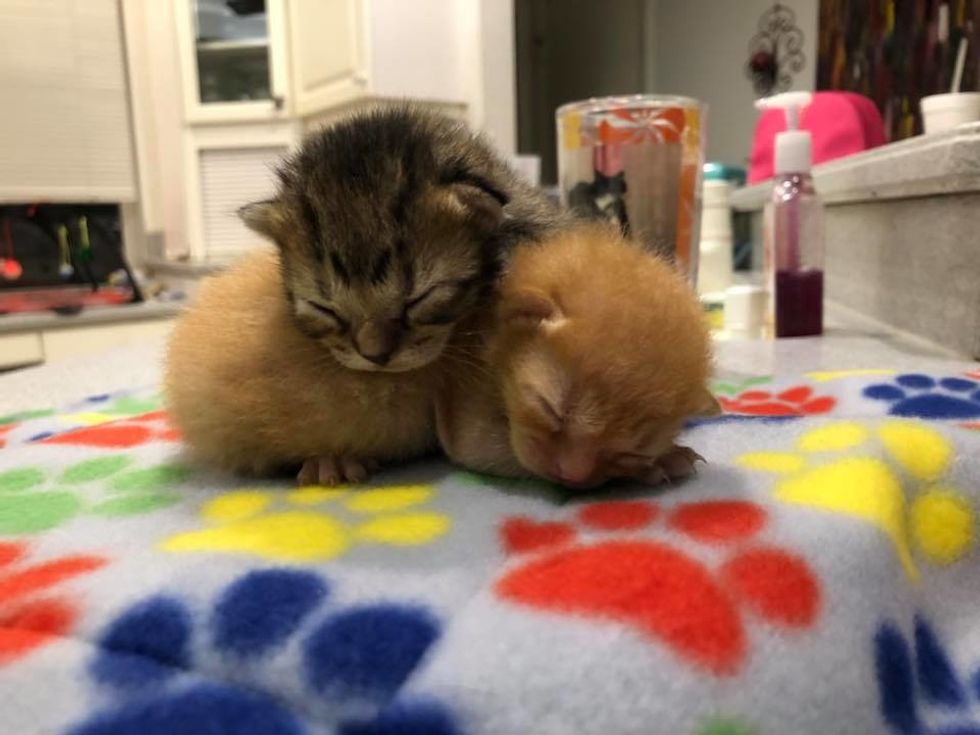 "Thankfully, Chapin and Laura, two vet techs, offered to foster. The kittens are doing fantastic, eating like champs and purring like crazy.