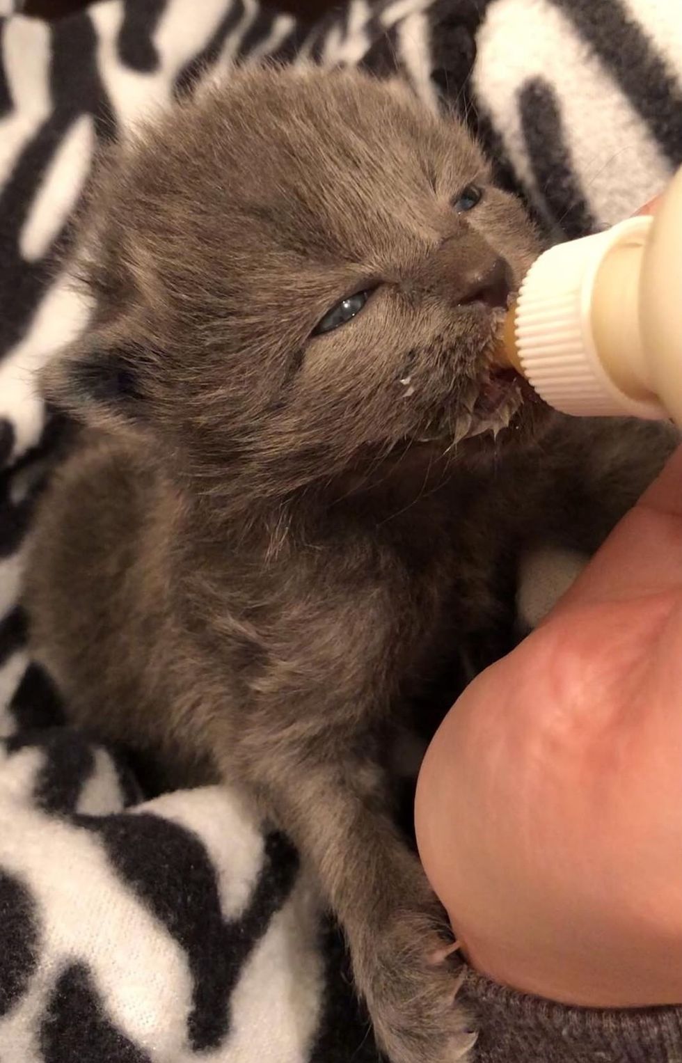 The gray kittens were two weeks old when they were found, and needed to be bottle fed around the clock. A local Humane Society took them in and placed them in a foster home.
