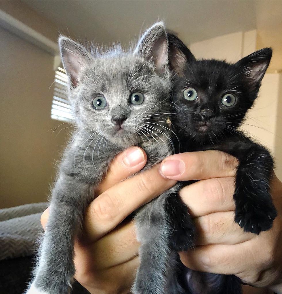 Nikki took them into her care the next day and offered to set up a trap at the school to find the mother cat. The kittens were named Ponch (black) and Jon (gray) (at the time, they were thought to be boys).