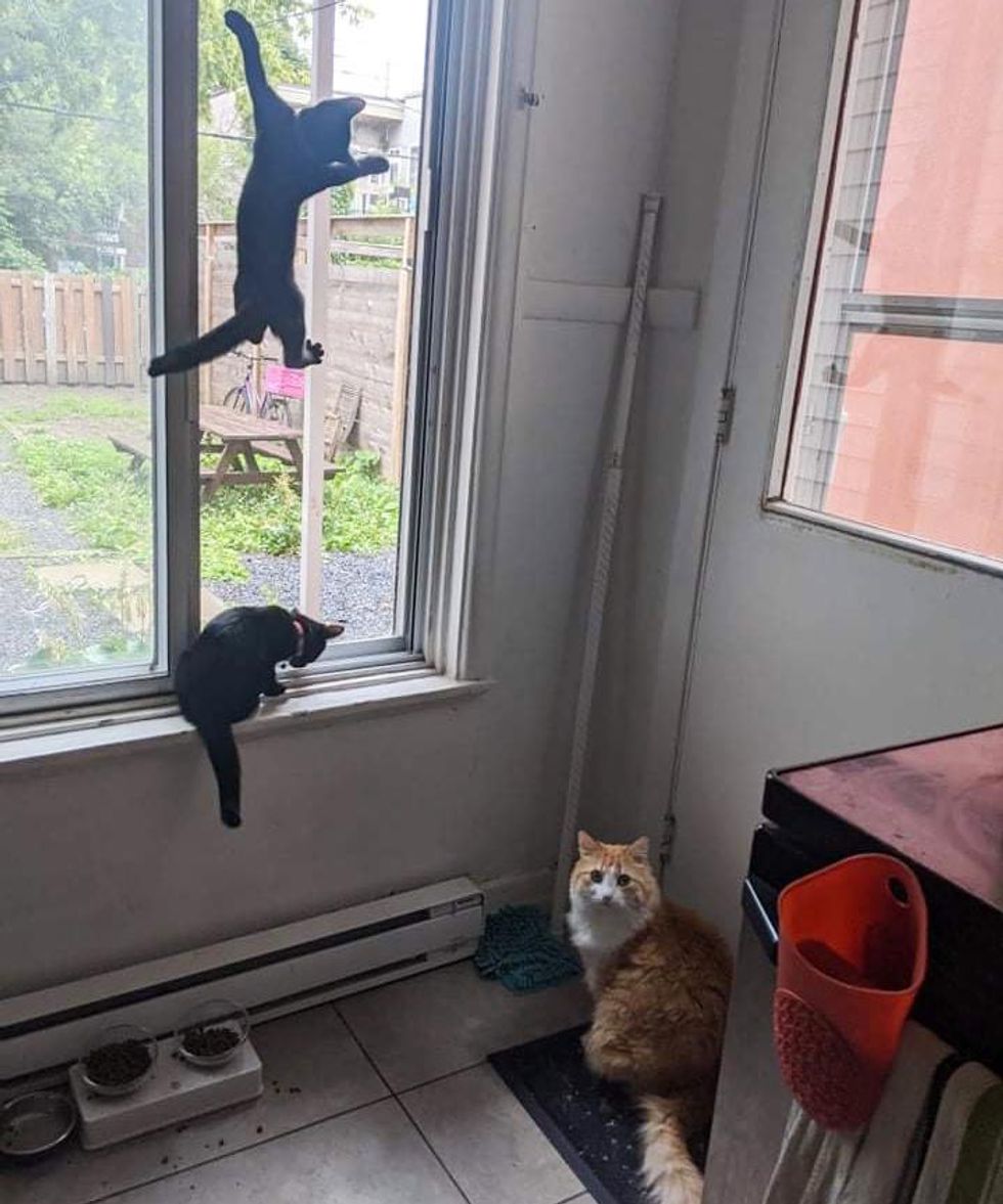 Even the resident cats find the dynamic duo fascinating as they follow each other around the house, where Ally takes the lead and Stella follows.