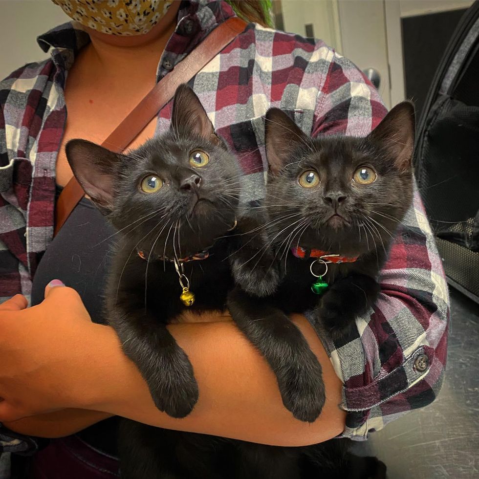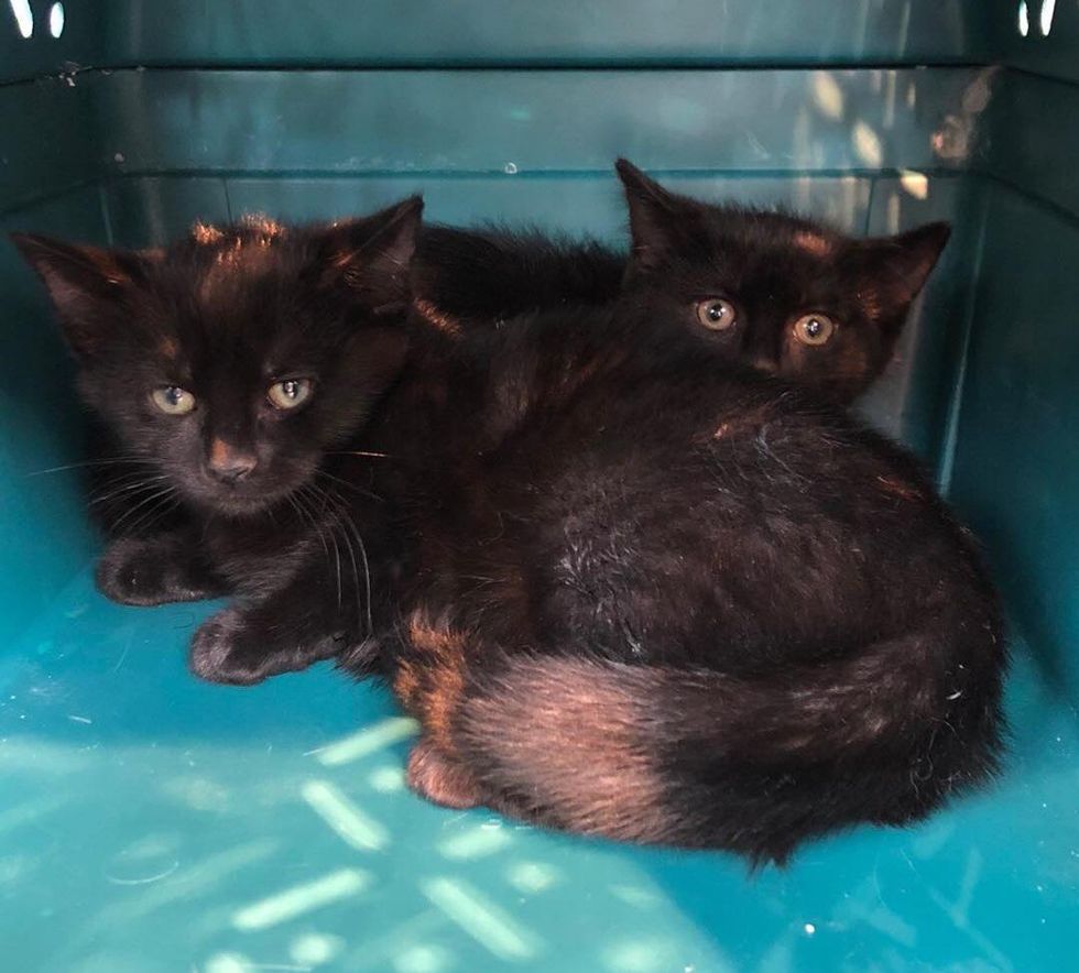 The pair had wandered to a garden outside a resident's home, and were scrounging around for food. The kittens were just a few weeks old, looked nearly identical, and kept each other close the entire time.