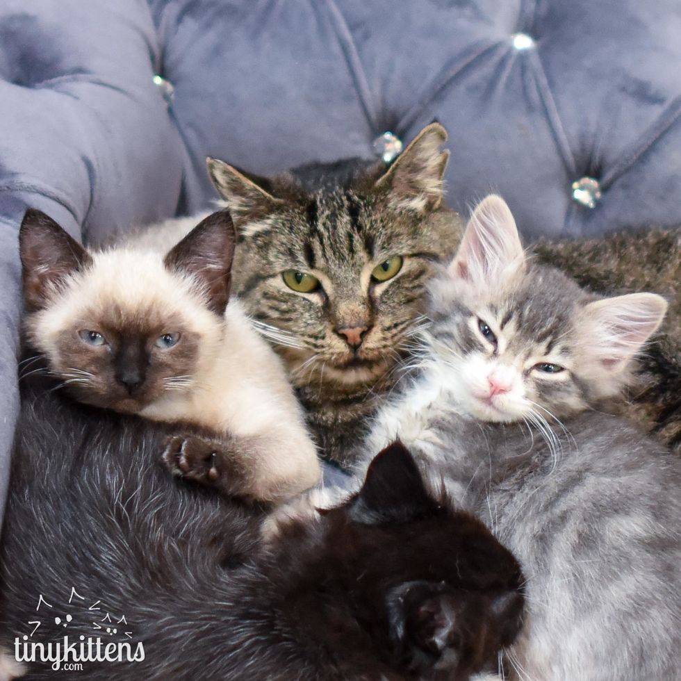 Since then, Mason has fostered dozens of orphaned/rescued kittens who were in need of a mother's love. He always comes to their rescue.