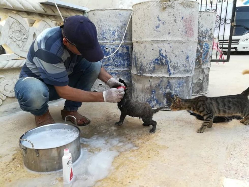 The Cat Man of Aleppo founded by Mohammad Alaa Jaleel) two months ago after rescuers found him in a barrel of diesel all alone.