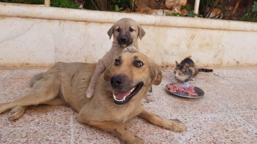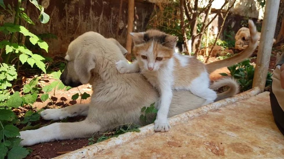They named him Henry and introduced him to another rescued dog named Amira, who had lost her puppies and become a surrogate mom to several kittens at the sanctuary.