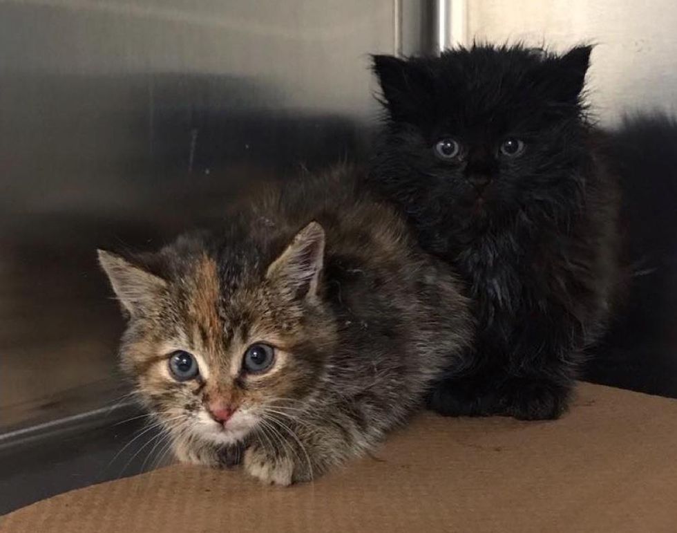The feline siblings were huddled together at the clinic the entire time and would't leave each other's side.