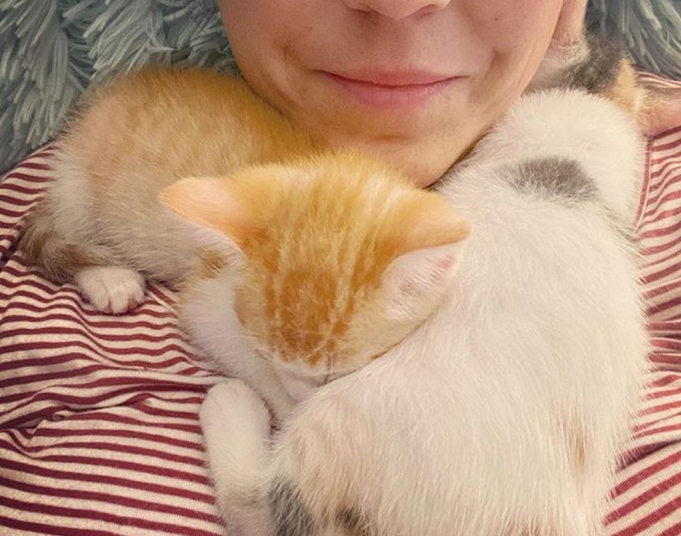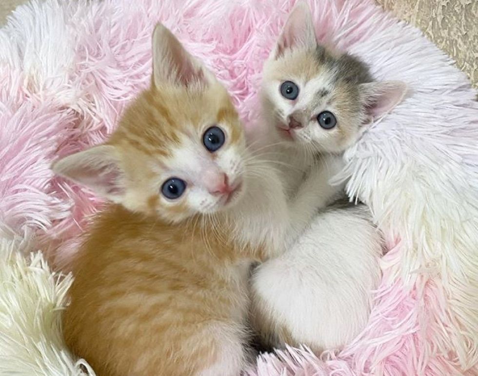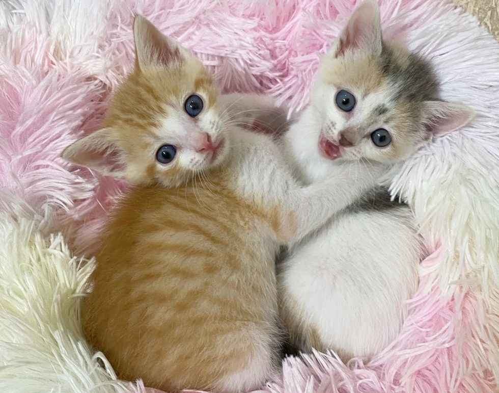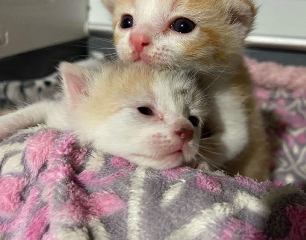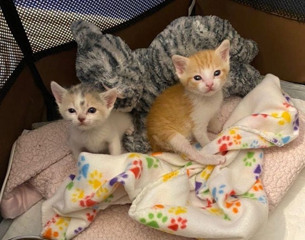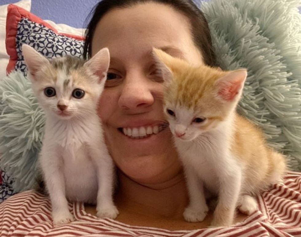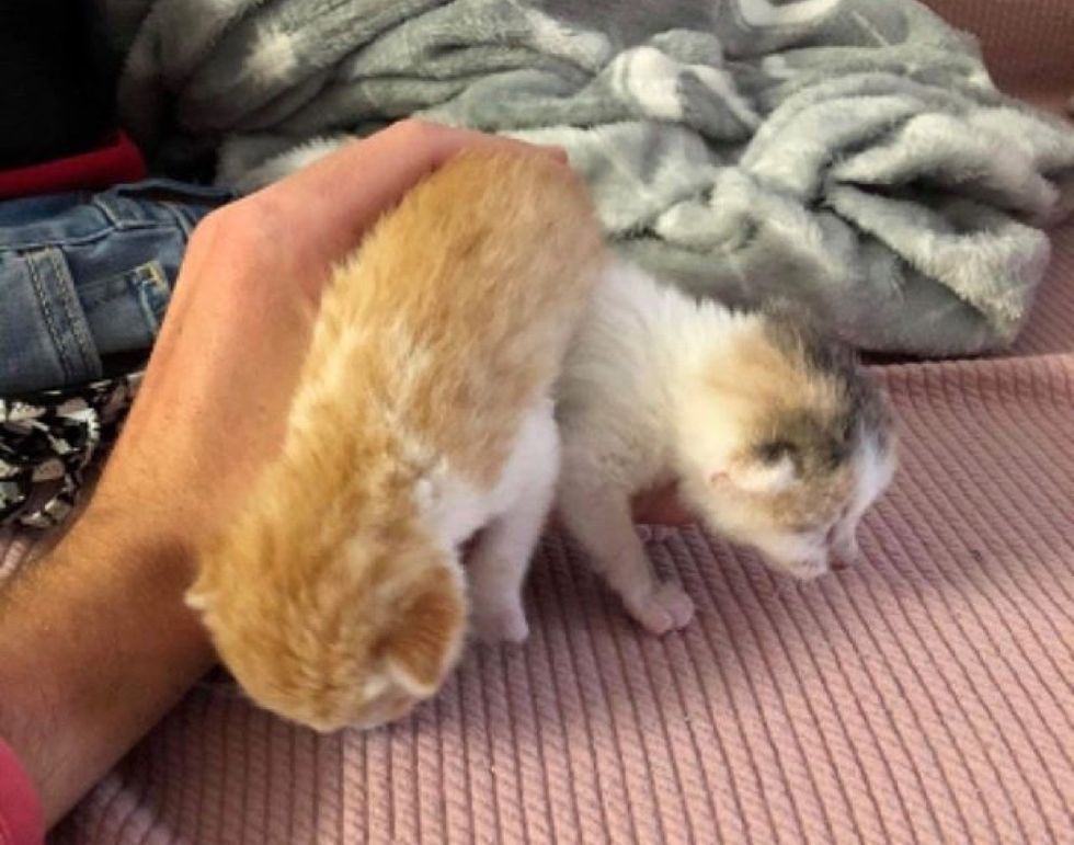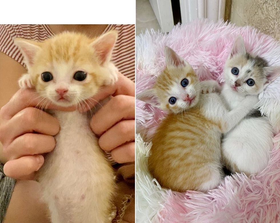 Two tiny kittens were found abandoned in a parking lot. A couple took them in and turned their lives around.