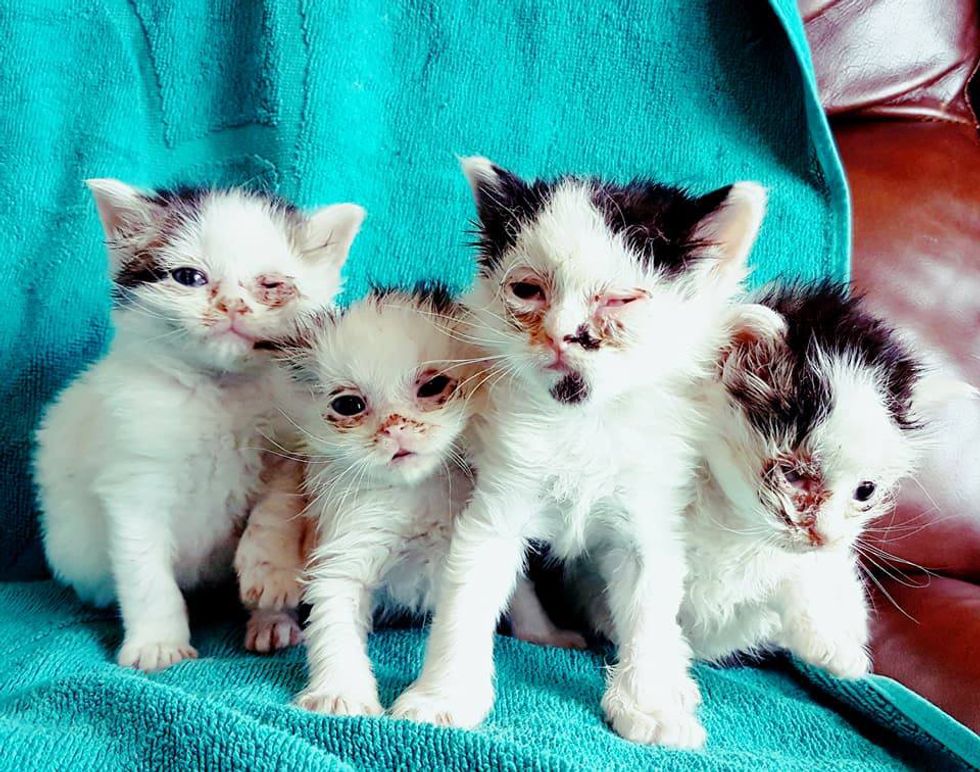 On October 11, four little kittens were taken into Rescue Me Animal Sanctuary, a rescue group in Merseyside, England. They were so weak that they wouldn't have survived one more day in the wild.