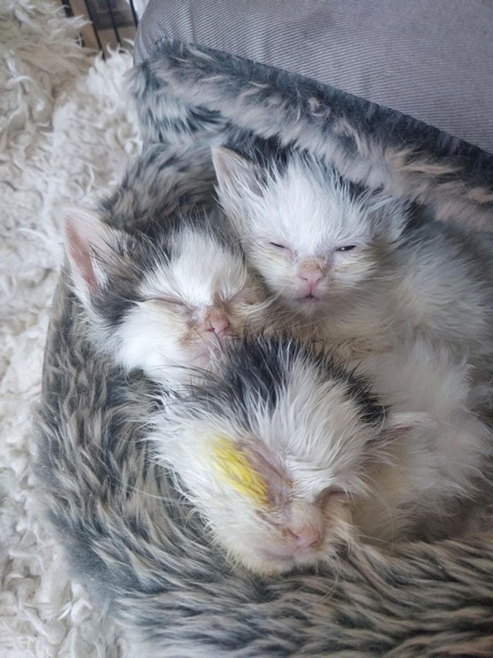 "These angels were born on the street to a feral mum cat, they were exposed to the cold, rain, disease and parasites that their poor mum could not protect them from."