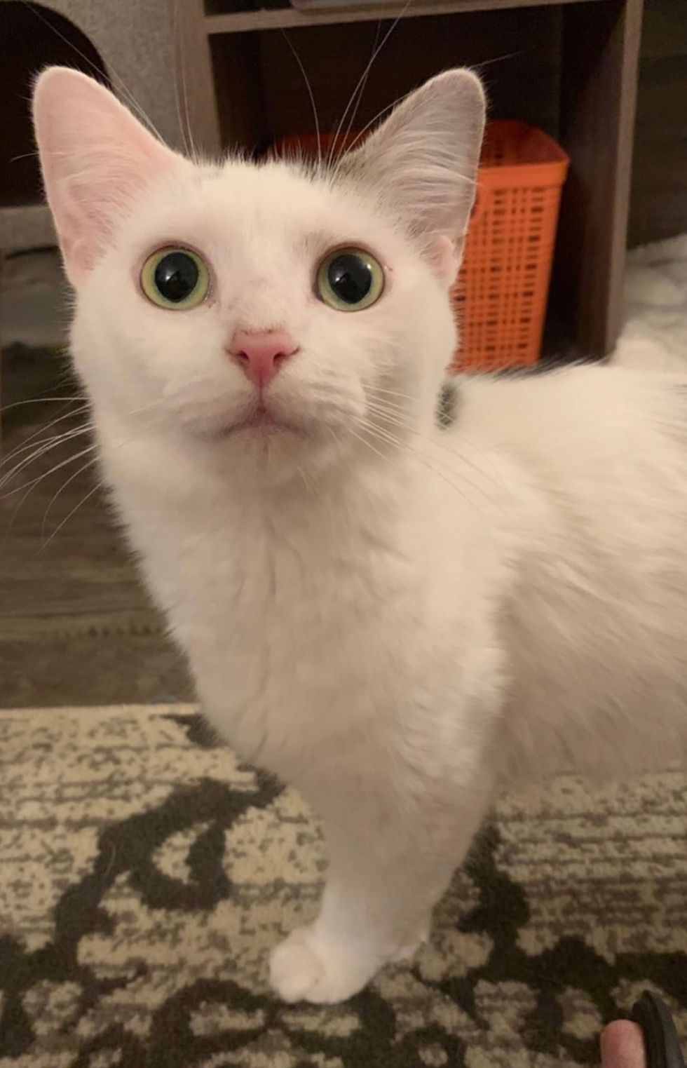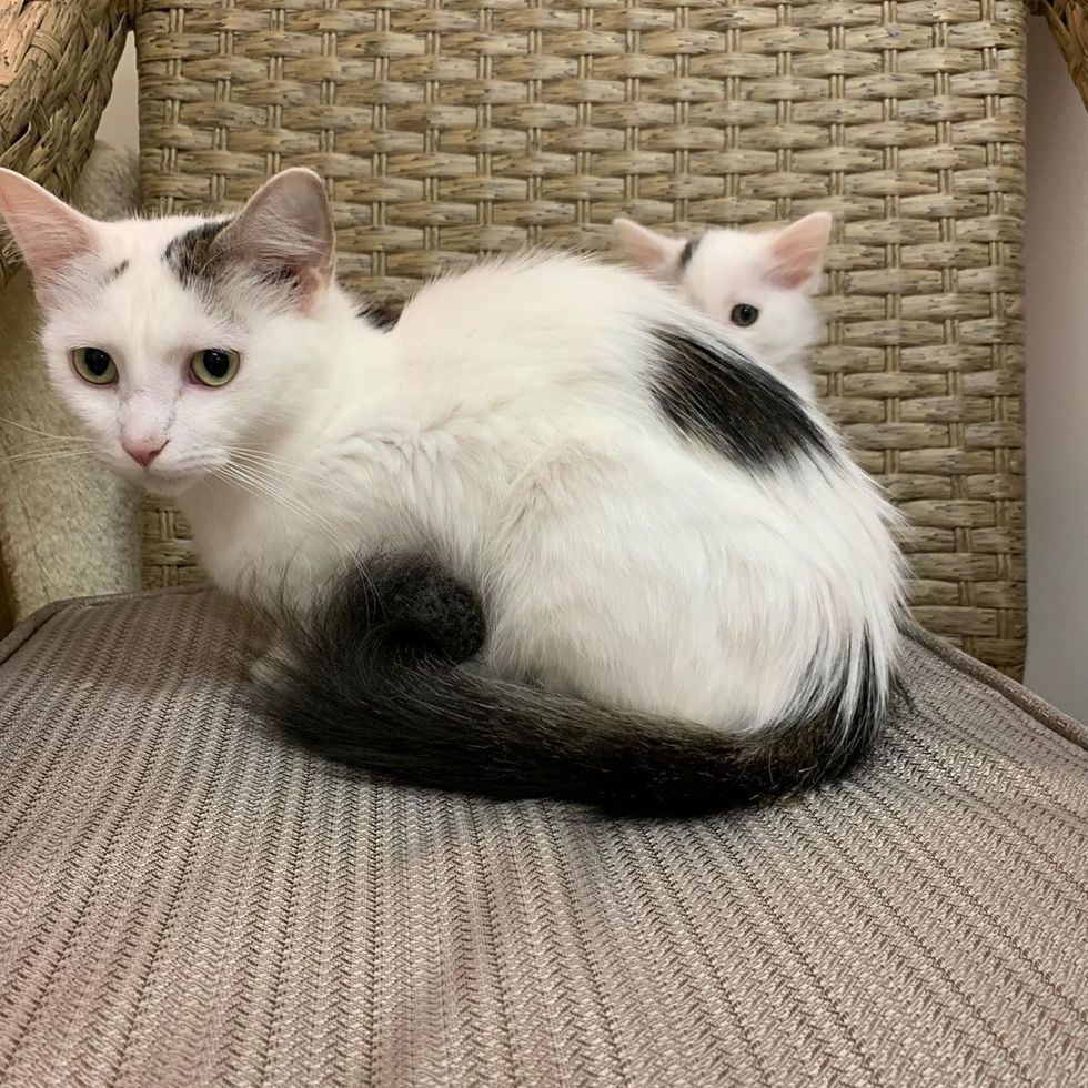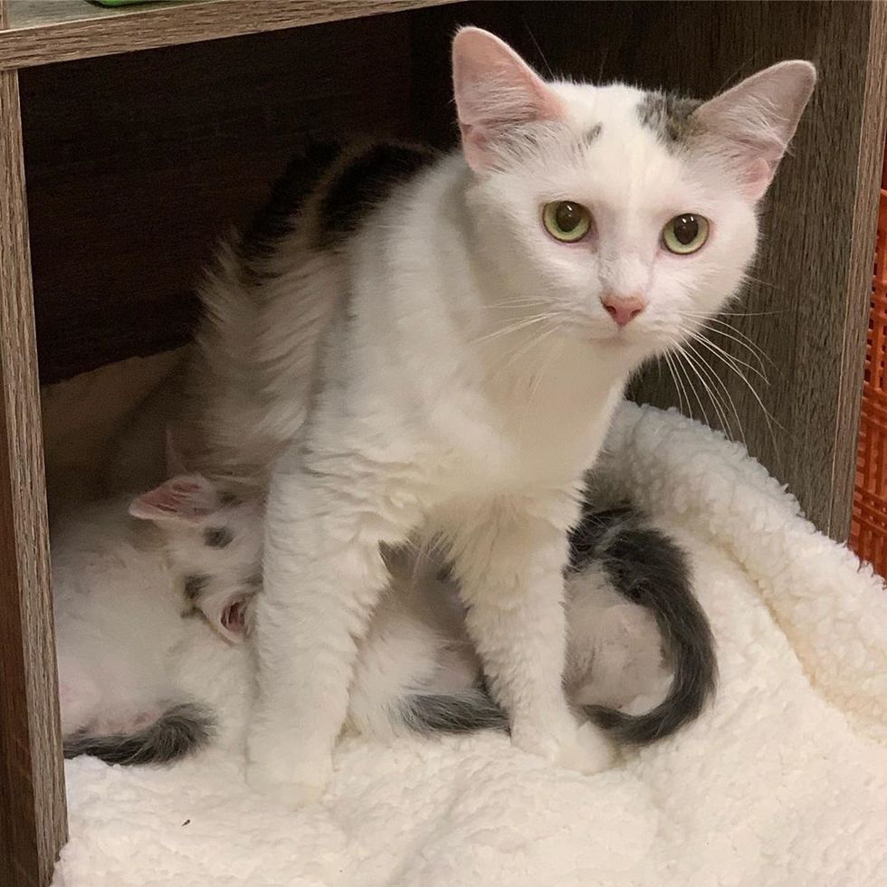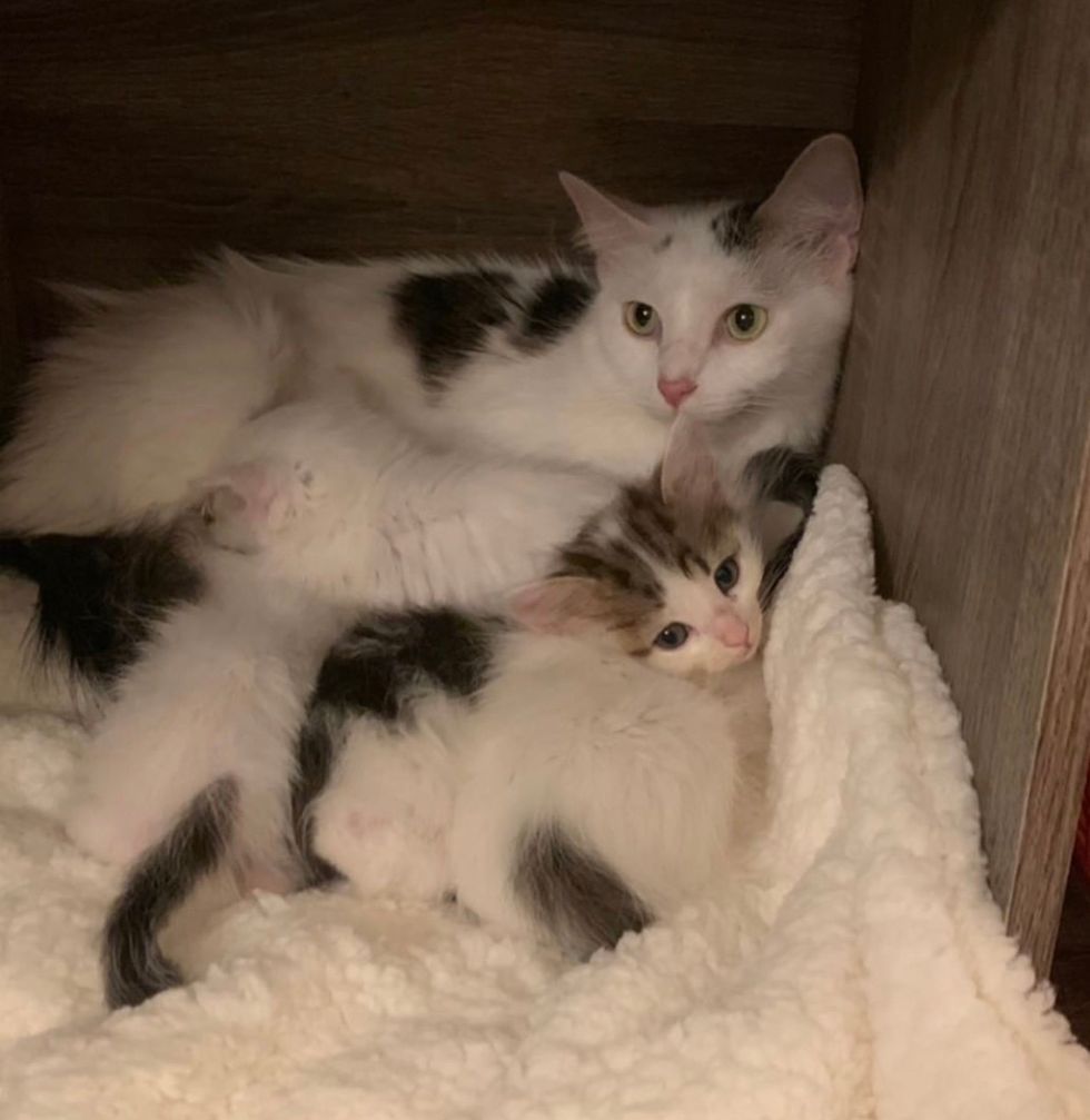Later that evening, an adult white cat showed up at the property — the missing cat finally returned. Once she was captured, they brought her to be reunited with her kittens.