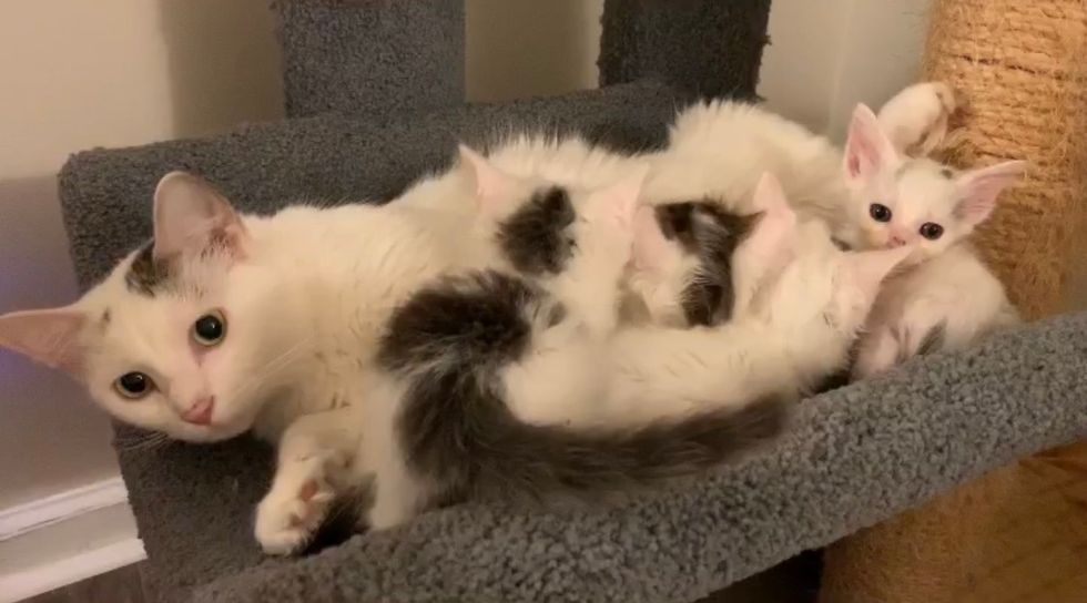 "The kittens were so excited to see their mom, and she was happy to be reunited with them," Stephanie told Love Meow. "She lay down and started nursing and cleaning them."