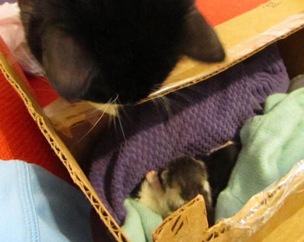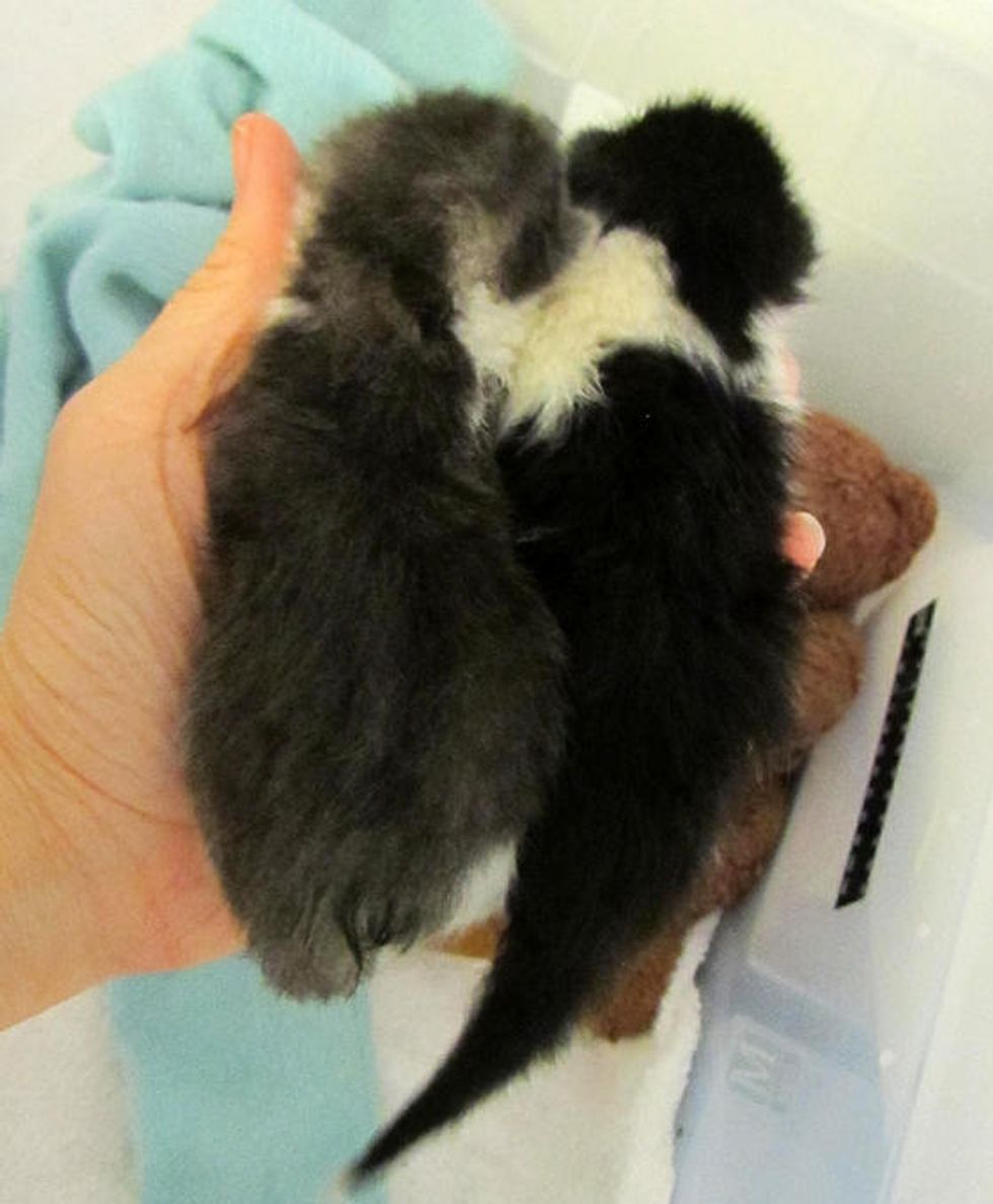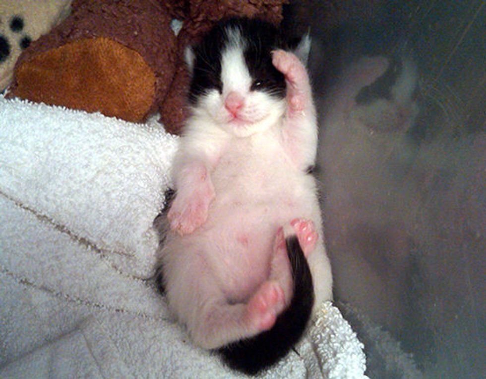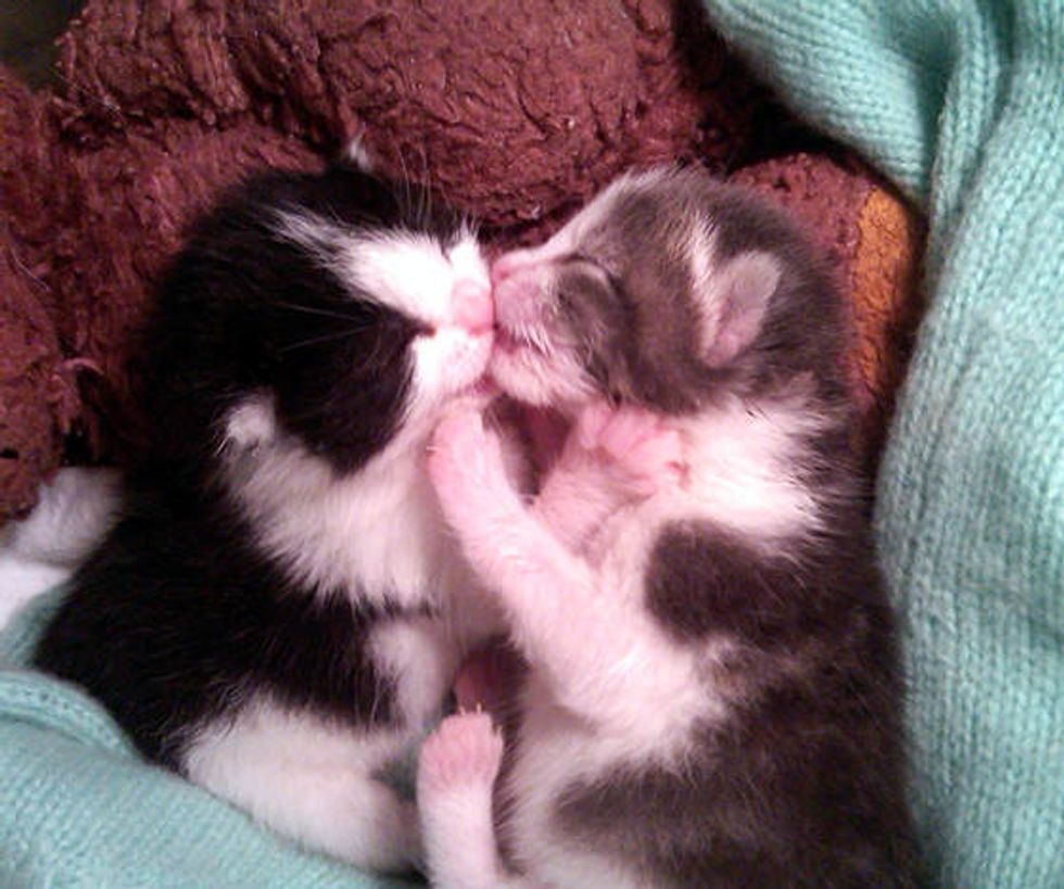 Two little kittens were rescued by a kind person from Brooklyn, New York right before Hurricane Sandy hit the east coast. "The kittens were wet and cold and the storm was picking up, so she took them in,” Stephanie wrote on her blog. She was headed out of town, so fosterer Stephanie of Big City Little Kitty took the week-old kittens into her care.