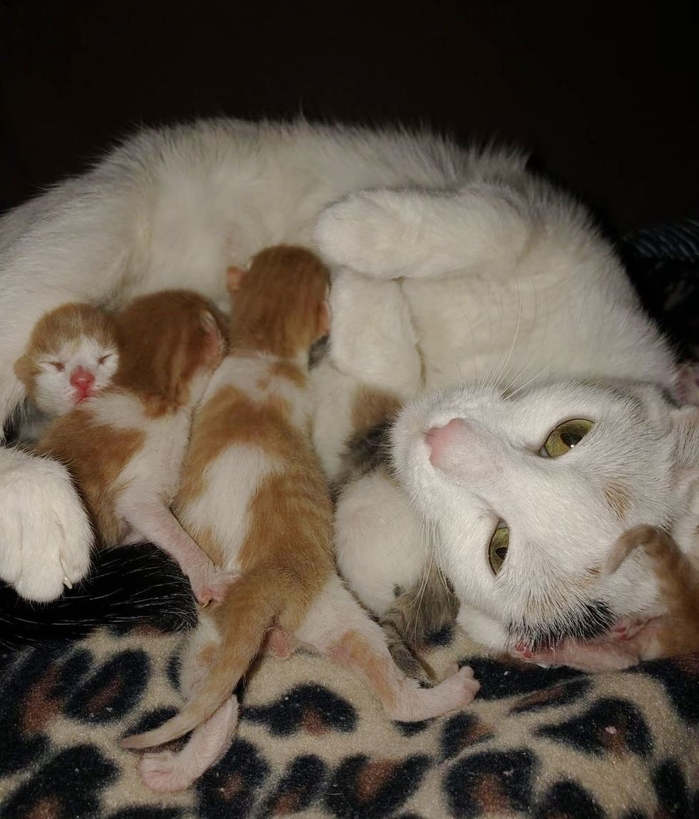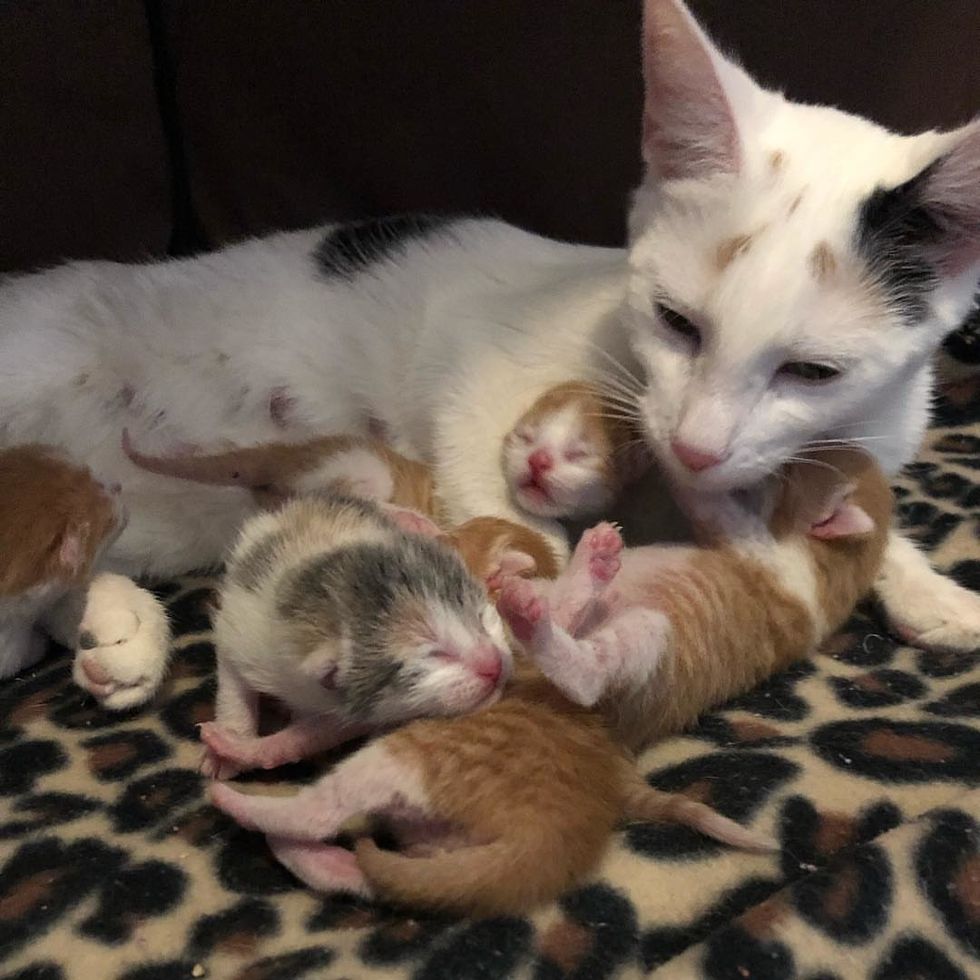 Molly the cat was brought into a shelter in Las Vegas after she was found as a stray. On December 29, she went into labor and gave birth to five little kittens.