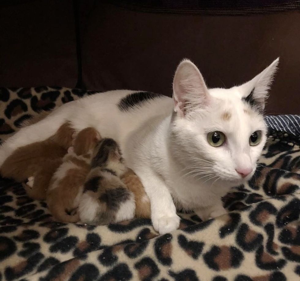 Mama Molly was taken off the streets just in time so her kittens wouldn't have been born outside.