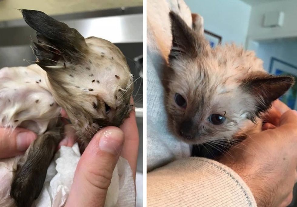 A volunteer of the rescue sprang into action and went to pick up the feline siblings. "Step one was to give them all baths to try to get some of the fleas off them," Harvie Schreiber, foster mom, told Love Meow.