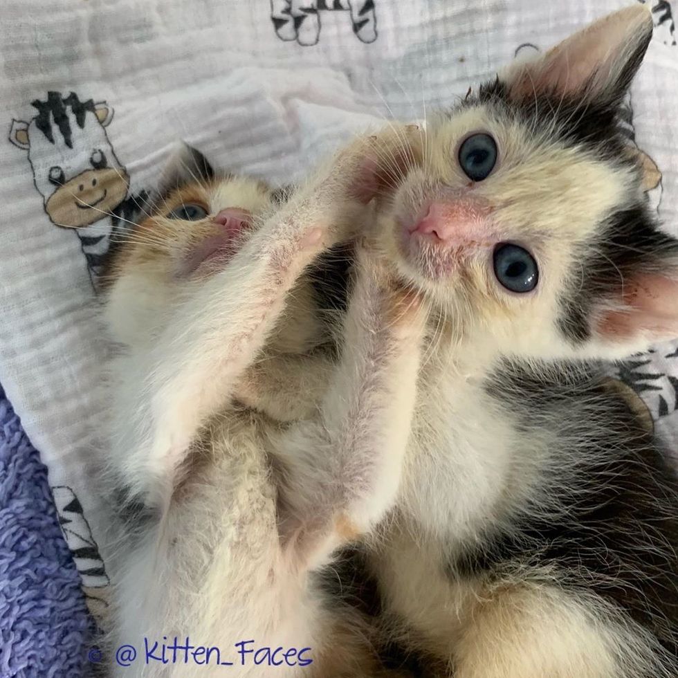 In just two weeks, the feline siblings have made an incredible transformation -- from having barely any strength to sit up to now scampering around the room like they own it.