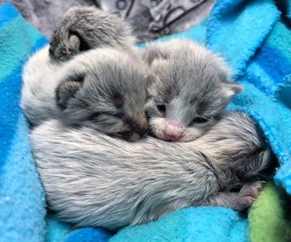 These tiny kittens were born with a silver-gray coat, but as they grew, their fur color started to change.