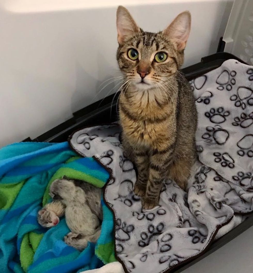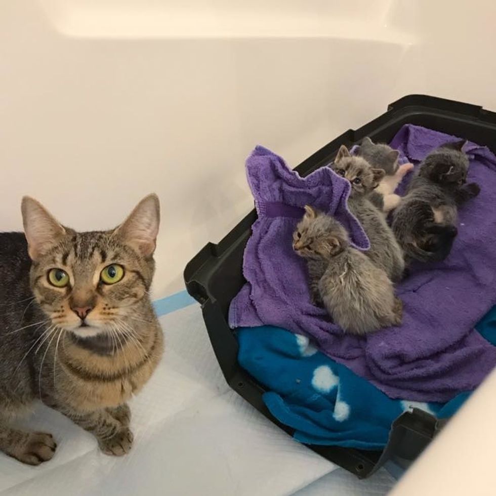A tabby cat and her six newborn kittens were surrendered to a local shelter in Montreal, Canada when their owners could no longer keep them.