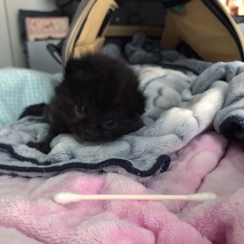 A black kitten was brought to a local shelter in Montreal, Canada after he was found outside all alone. Shelter staff reached out to Chatons Orphelins Montréal for help as the kitty needed round-the-clock bottle feedings.
