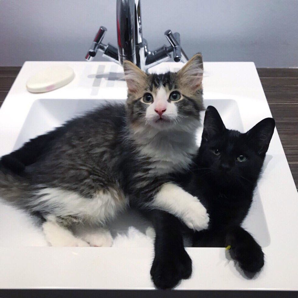 When Shooby wants to lie in the sink, Criquet makes sure he's in it for a cuddle, too.