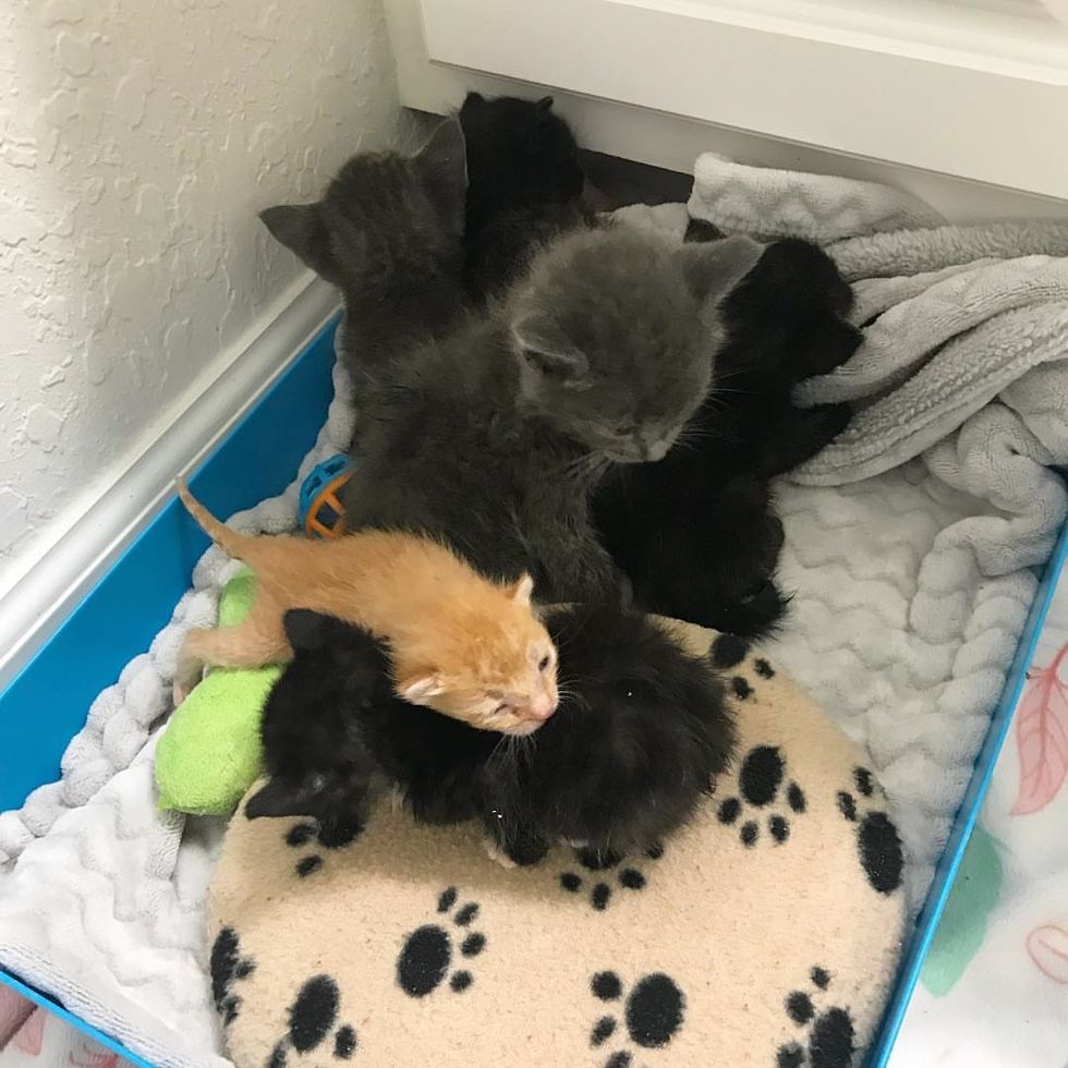Meanwhile, five other kittens from two separate litters were found and taken to the shelter, Pet Alliance Greater Orlando. They were about three weeks old. Just like Kelvin, they were in need of a mom and a foster home.