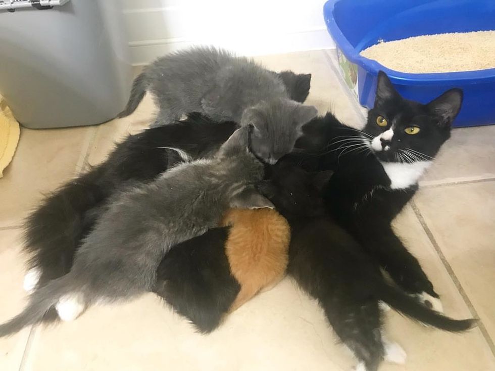 The shelter reached out to their volunteers and asked if anyone could foster the kittens along with a surrogate mom, Joule, who had recently finished raising her own kittens and still had milk left. Lisa Krakosky saw the plea and stepped up to help.