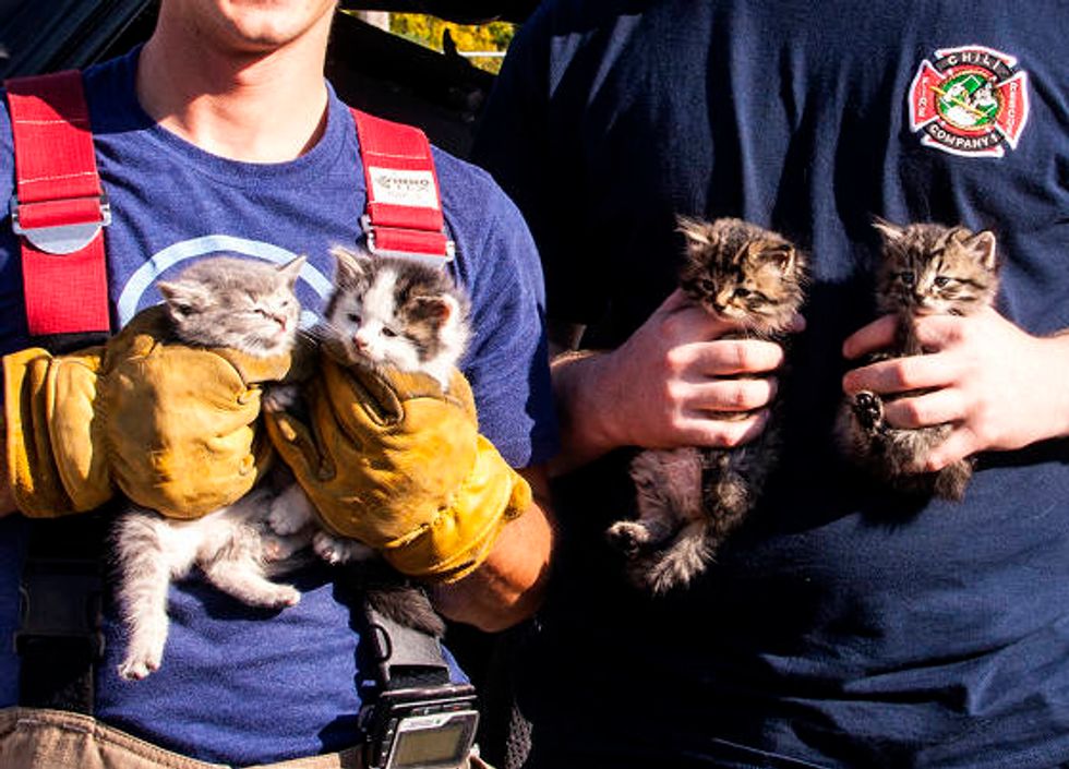 The cat mother was nowhere to be found. Without proper feeding and caring from their own mother, only four of the kittens survived. These kittens called out to the firefighters who came to the rescue in the nick of time.