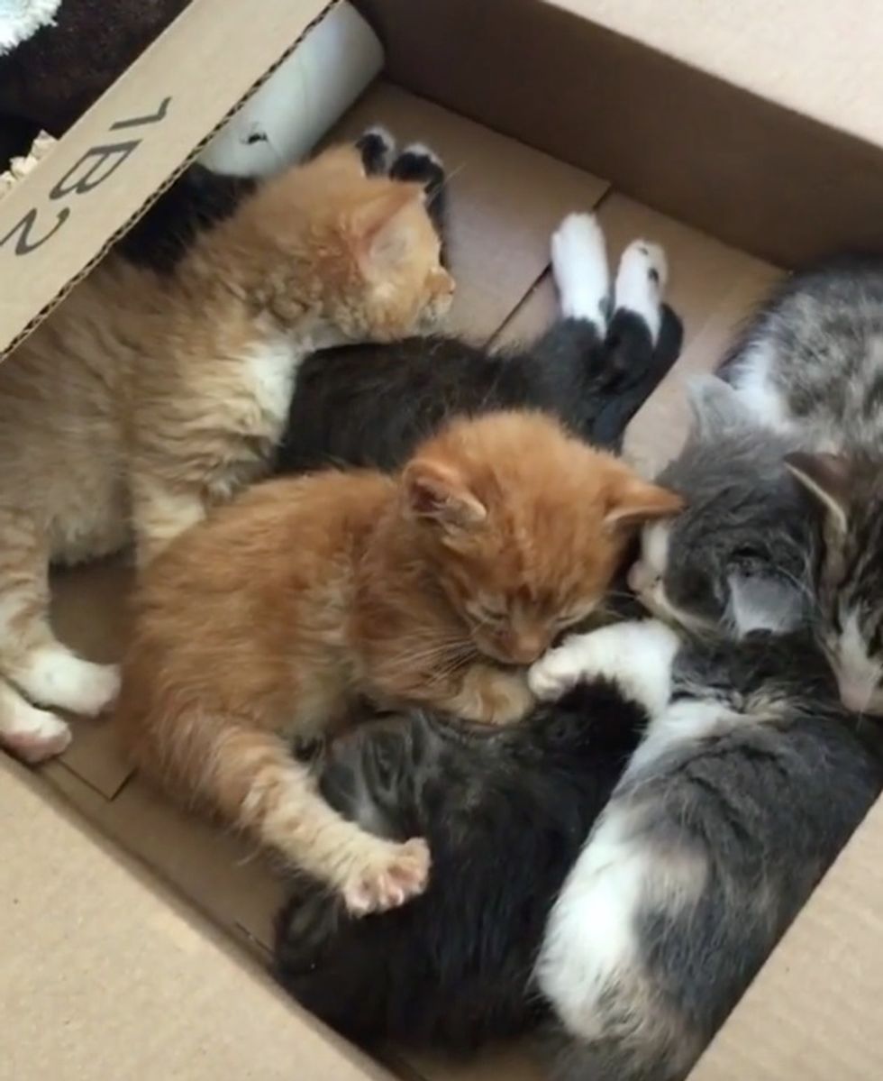 "Someone walked into the shelter with a box full of kittens. They may have said that they found them," Ronda told Love Meow.