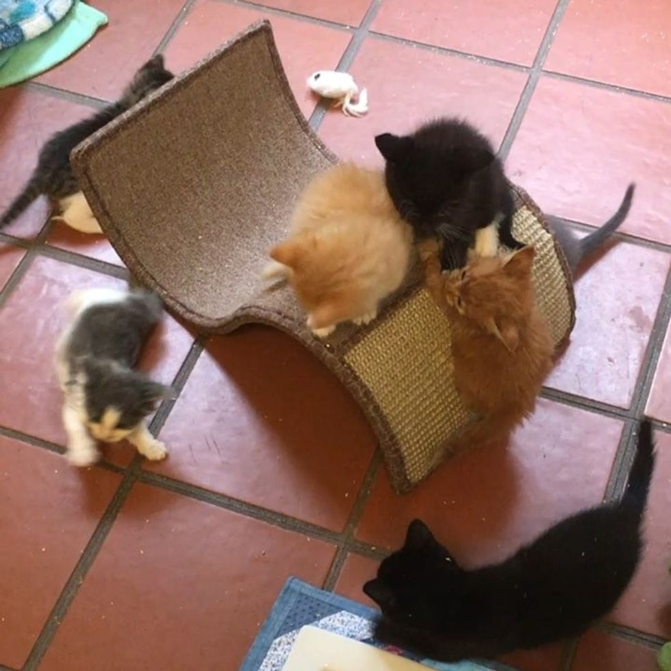 The kittens were a few weeks old from at least two different litters. Knowing how important having a home environment is for kittens their age, Ronda took it upon herself to care for them.